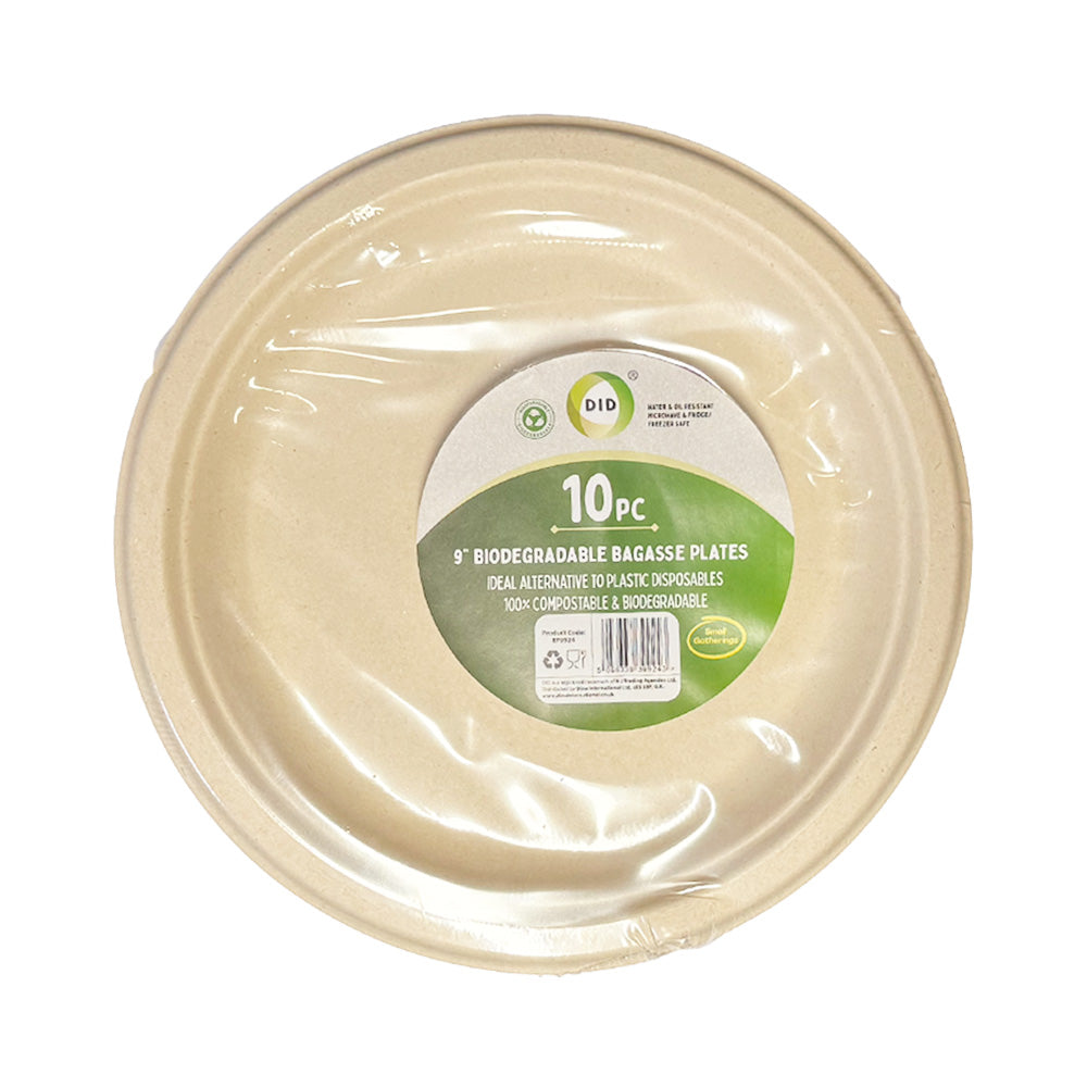 DID 9" Round Biodegradable Bagasse Plates - 10pc