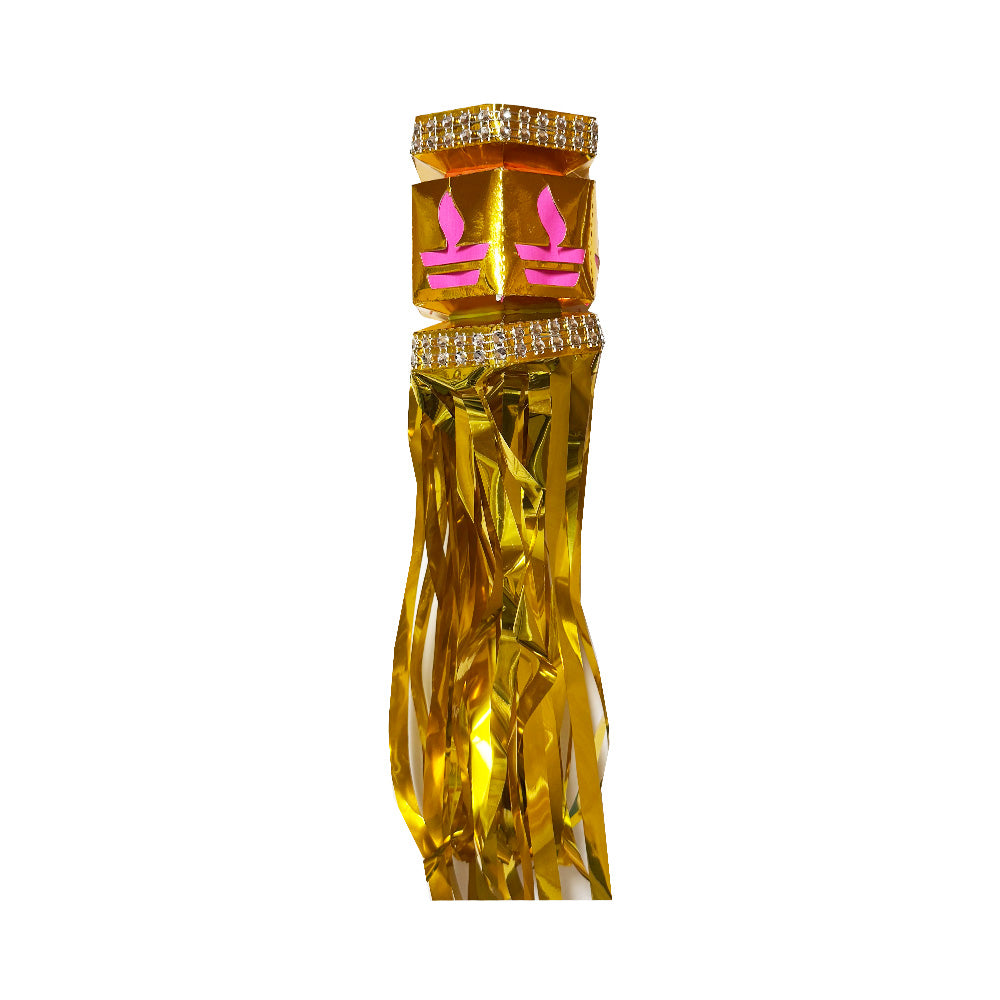 Gold coloured Diwali lantern with string to hang up.