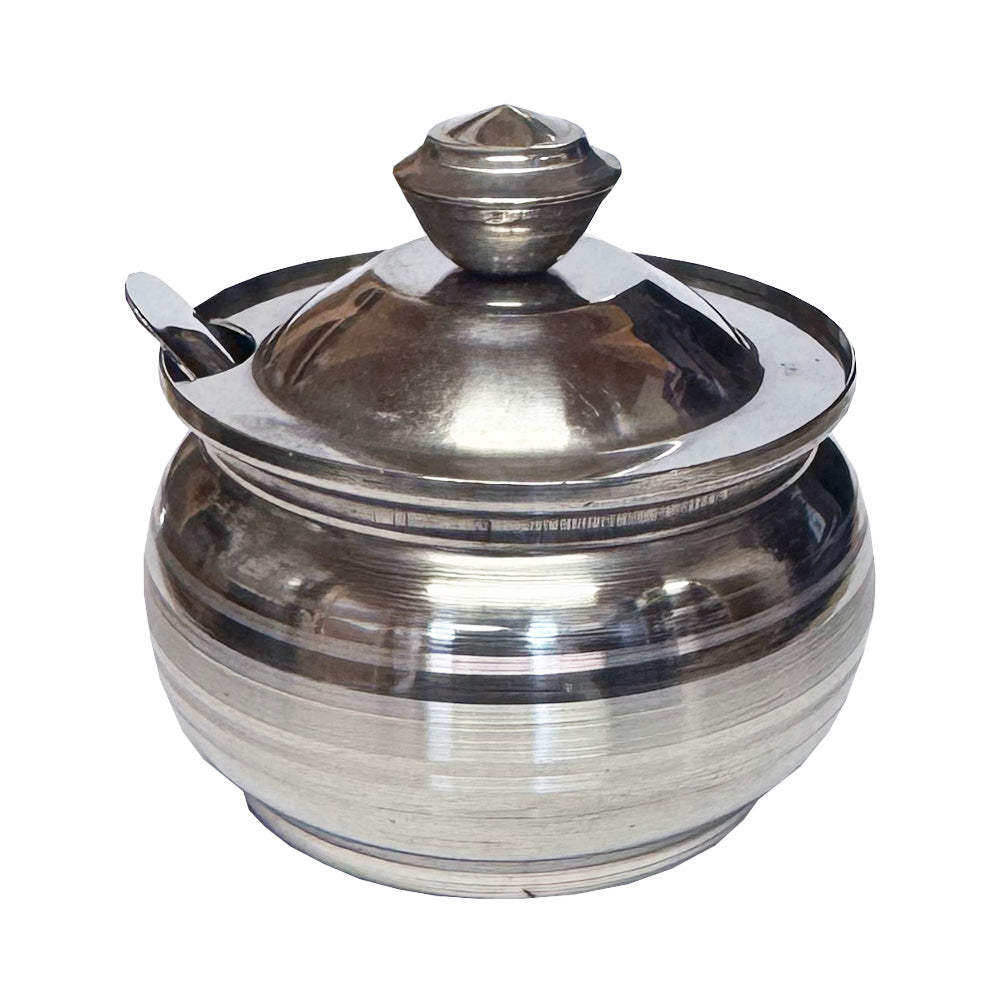 Stainless steel lotus ghee pot. Includes stainless steel ladle.