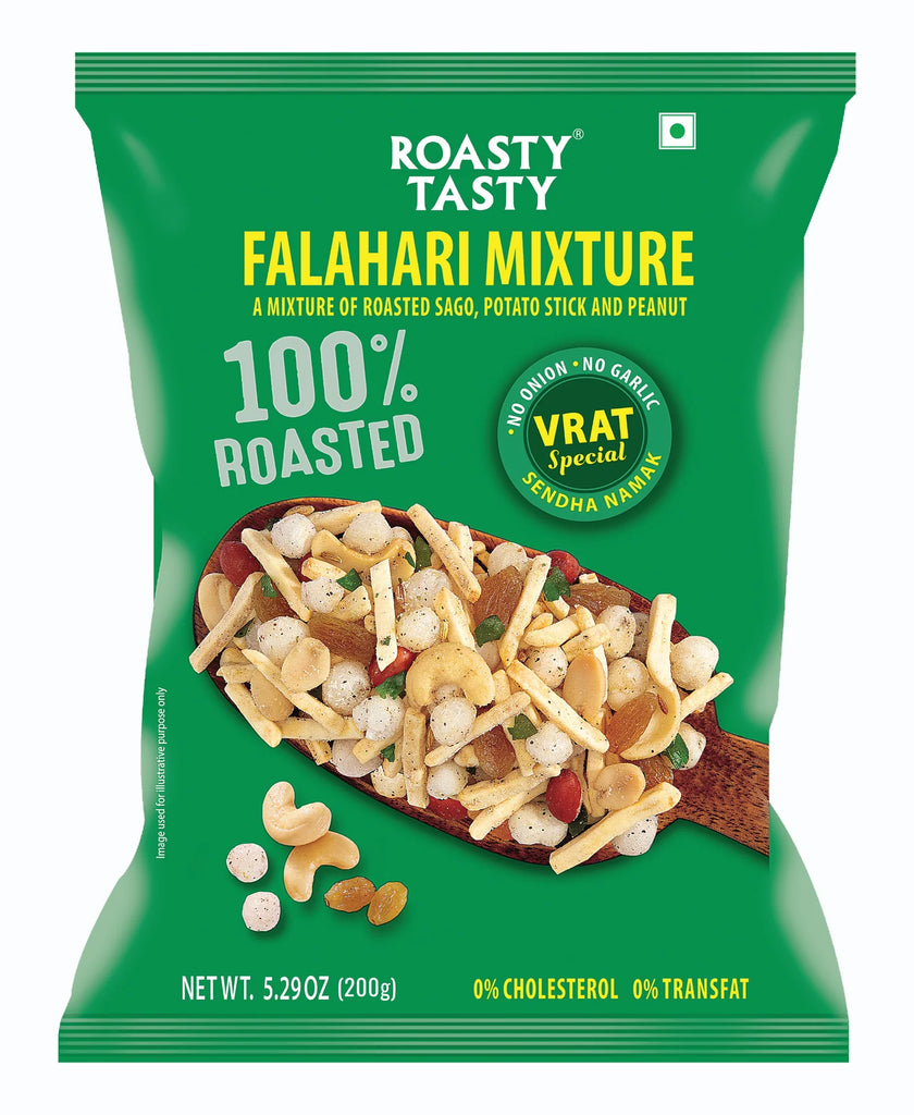 Roasty Tasty Falahari Mixture is your guilt-free snack during fasting. Roasty Tasty Falahari Mixture is 100% roasted and Palm oil free.