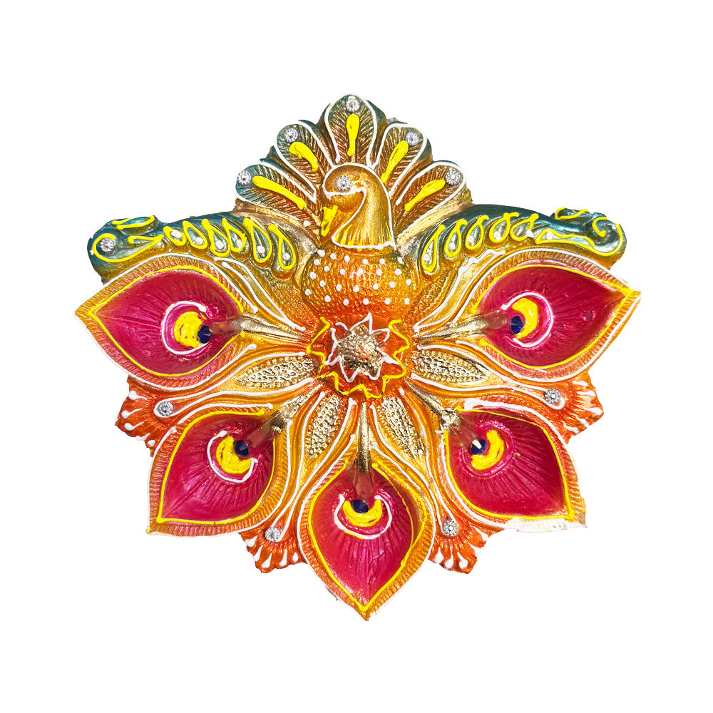 Clay, also referred to as 'Mitti', Diya/Diva. Peacock shaped diya plate decorated diyas. Contains NO wax and wick.