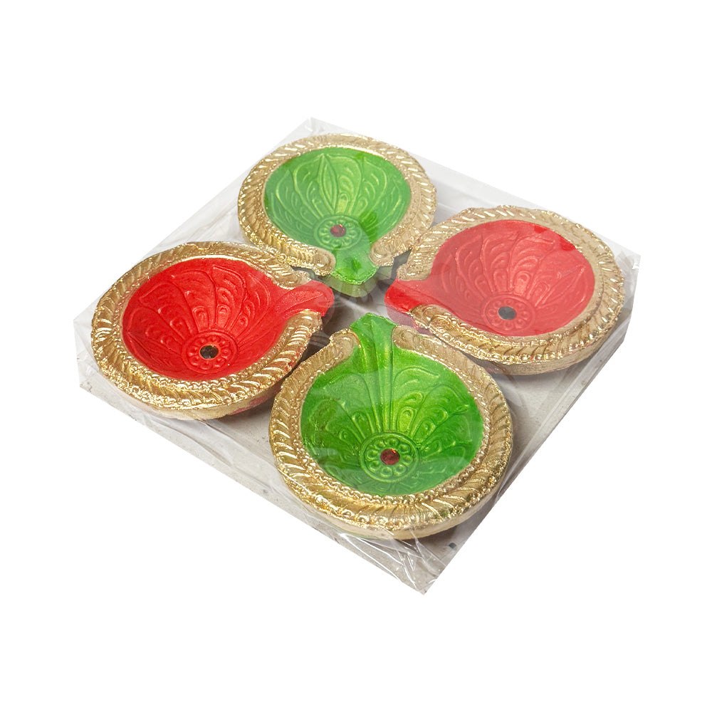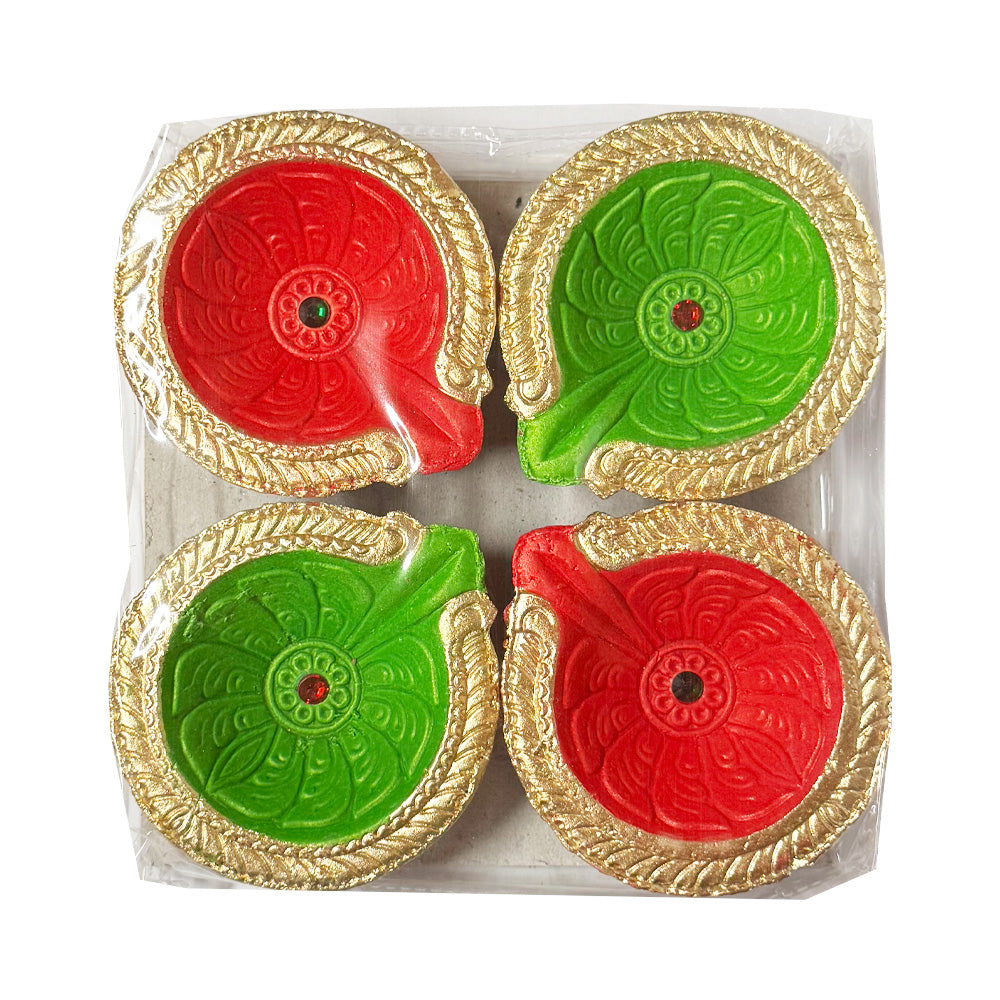 Clay Diya/Diva Red & Green - 4pc